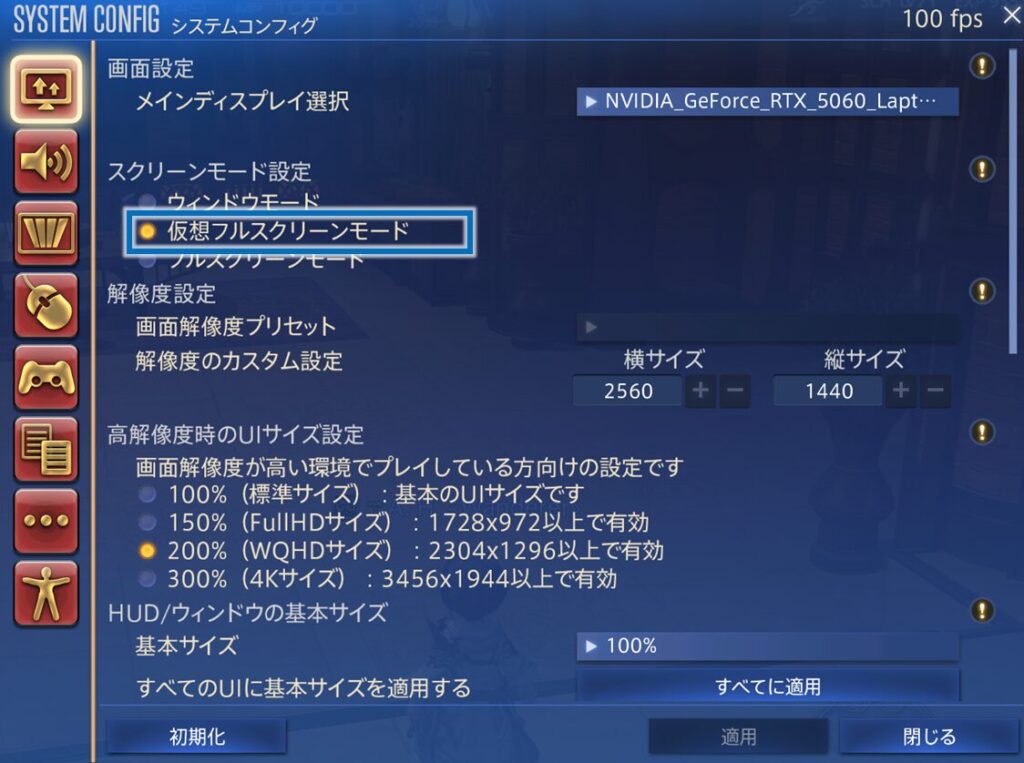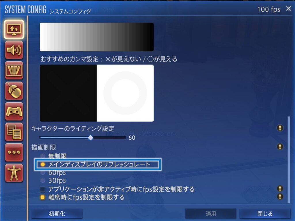 FF14であれば、100fps前後で固定するのがバランスが良いと感じています。