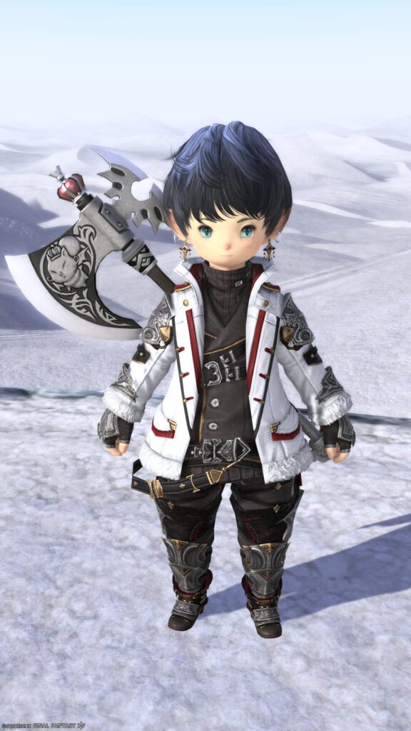 戦士専用の斧として実装されており、モーグリの雰囲気を表現した可愛らしいモチーフが施されたデザインとなっています。この武器はモーグリの可愛らしく間抜けな感じが表現されており、抜刀時には浮かび上がる音符のエフェクトと抜刀、納刀時にモーグリの声がSEとして鳴るのが大きな特徴です