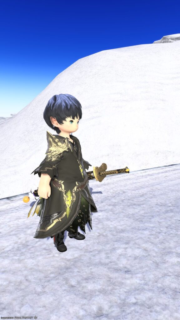 侍専用の刀として実装されており、モーグリの雰囲気を表現した可愛らしいモチーフが施されたデザインとなっています。この武器はモーグリの可愛らしく間抜けな感じが表現されており、抜刀時には浮かび上がる音符のエフェクトと抜刀、納刀時にモーグリの声がSEとして鳴るのが大きな特徴です