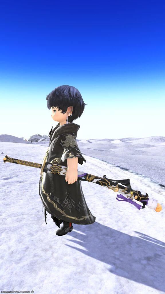 戦闘中だけでなく、街中での待機時やSS撮影でも映えるため、ミラプリ用装備としてオススメの武器です。
