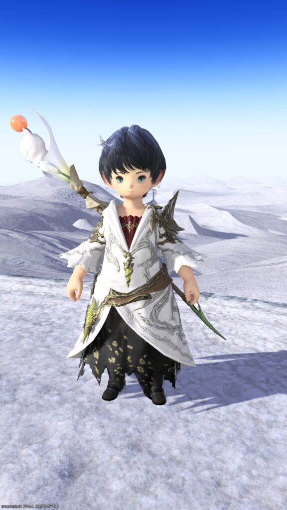 白魔導士専用の幻具として実装されており、モーグリの雰囲気を表現した可愛らしいモチーフが施されたデザインとなっています。この武器はモーグリの可愛らしく間抜けな感じが表現されており、抜刀時には浮かび上がる音符のエフェクトと抜刀、納刀時にモーグリの声がSEとして鳴るのが大きな特徴です