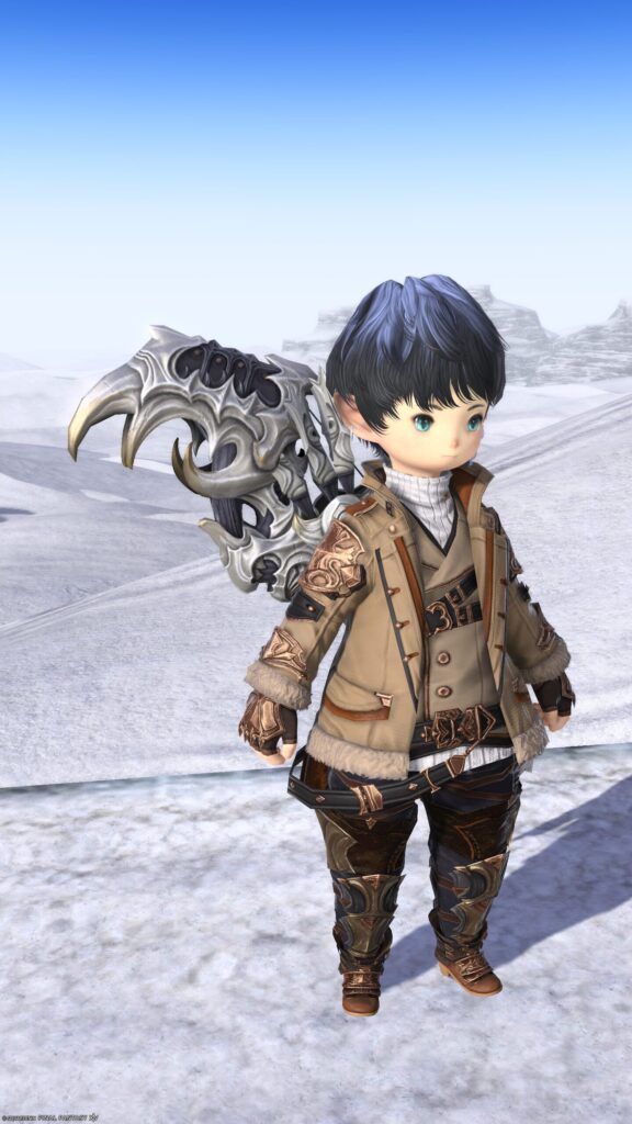 FF14「漆黒のヴィランズ」で実装された、極ダイヤウェポン捕獲作戦をモチーフにした光る蛮神武器シリーズです。
