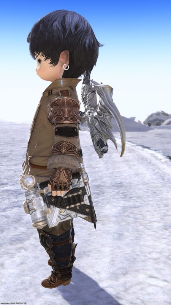 - 機工士専用片手銃「アダマンティン・ハンドガン」は、アンティークシルバーの外装と内部から覗くダークストレートグレーを基調とした、機械的かつ生物的なデザインとなっています(*’▽’)