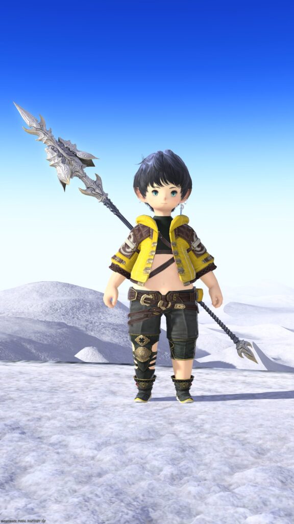 - 竜騎士用長槍「アダマンティン・パルチザン」は、アンティークシルバーとダークストレートグレーを基調とした、機械的かつ生物的なデザインとなっています(*’▽’)